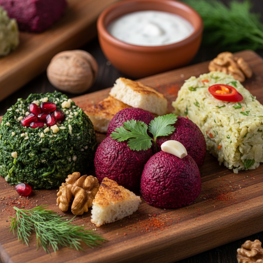 A flavorful vegetarian appetizer made with finely chopped greens and walnuts.
