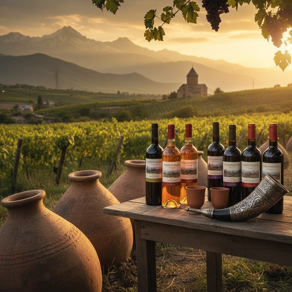 Georgian wine — one of the world’s oldest wine traditions with over 8,000 years of history. Rich, authentic flavors crafted with traditional qvevri clay vessels, bringing a unique taste of Georgia to your table.